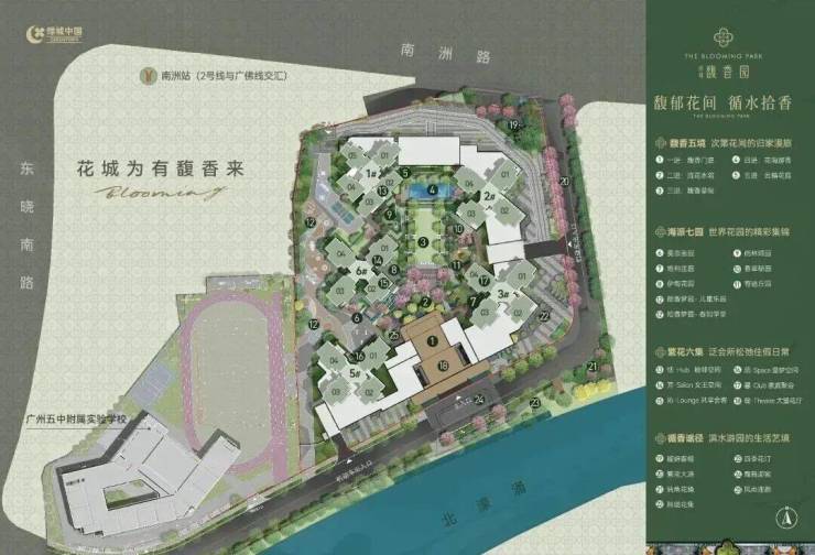 从外部来看,项目背靠河涌,打造了一个滨河公园,与周边的海珠儿童公园、海珠湖、海珠国家湿地等,形成了巨大的天然的生态背景板。