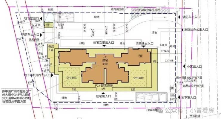 项目只有1栋38层的高住宅,容积率为3.8,一层四户布局