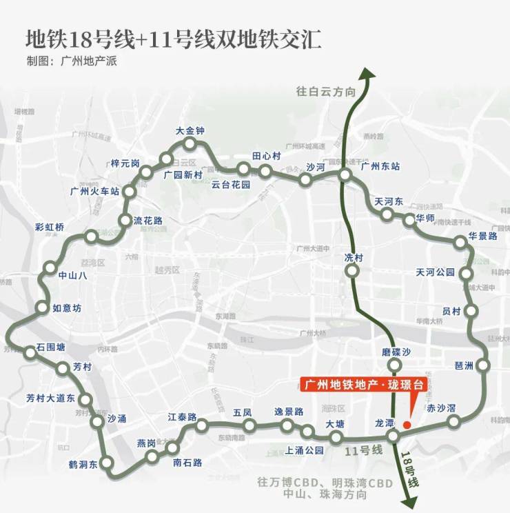 珑璟台作为18号、11号线交汇的双地铁上盖TOD项目,可以迅达广州各大繁华区域。