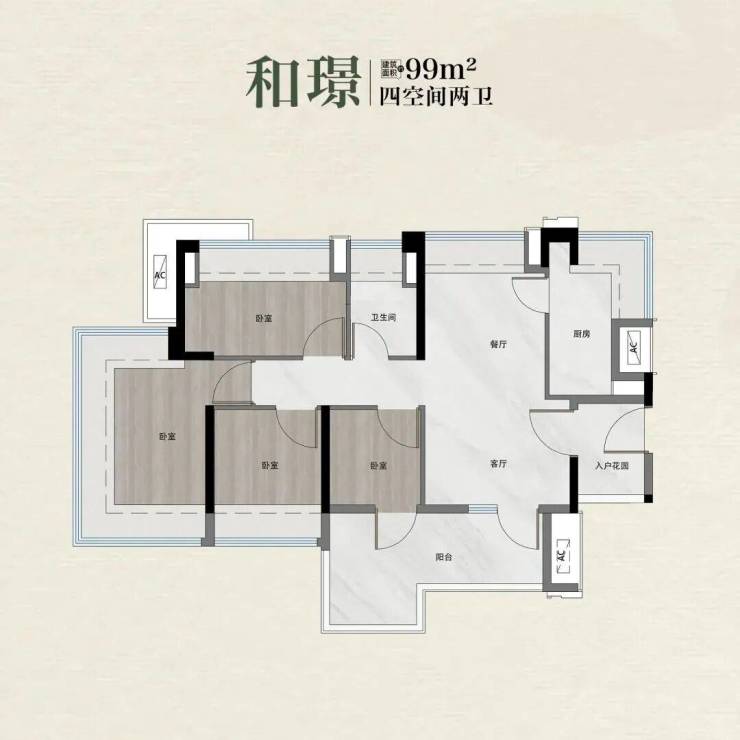 四开间朝南已经是基操了,卧室全部南向归置,厅房阳光景观平权。