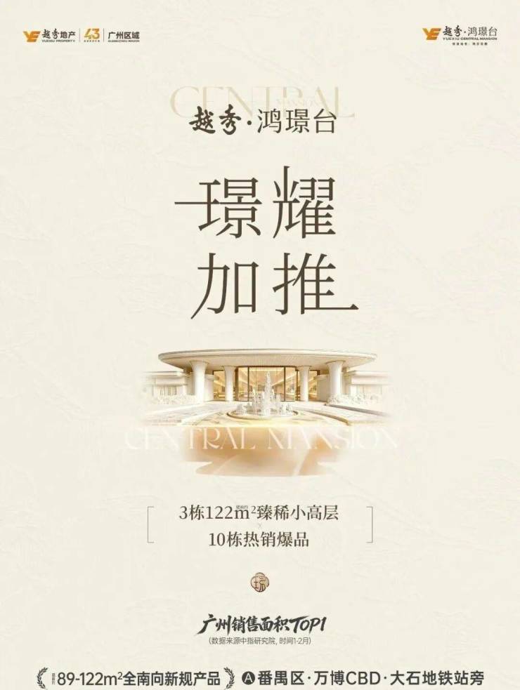 目案名首曝,就叫越秀·鸿璟台,新中轴全新迭代产品,项目定位天字系。