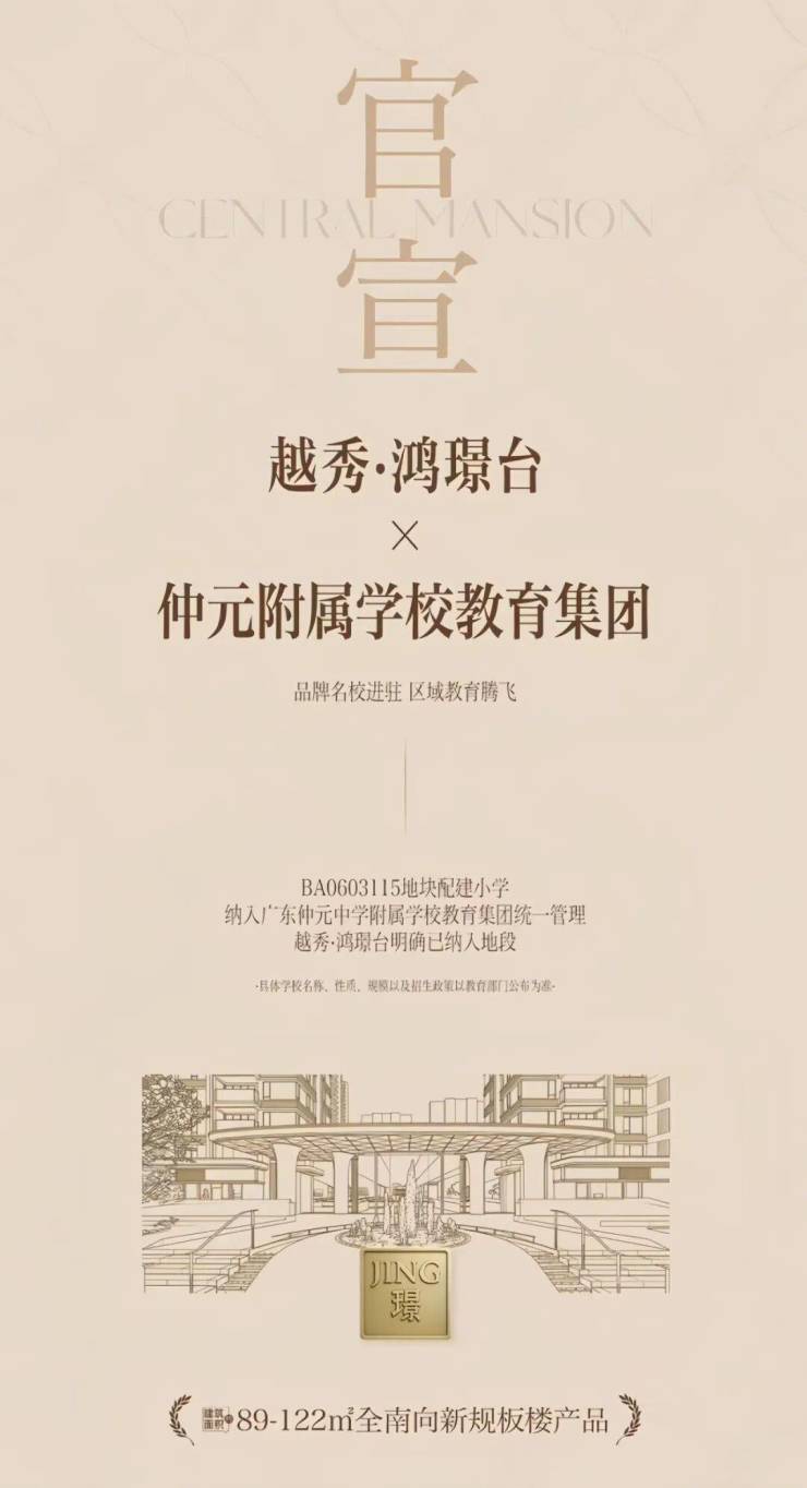 越秀・鸿璟台官宣了这一喜讯:“名校入驻”,贴满亮相海报。