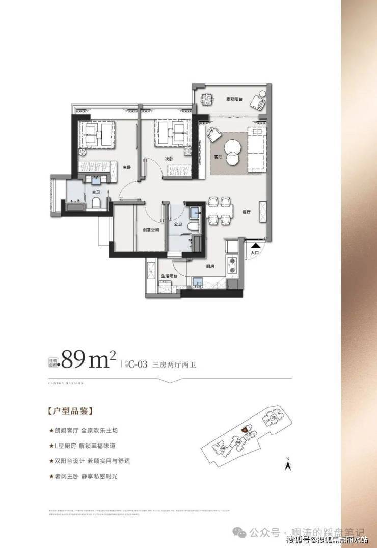 双阳台设计,L形厨房布局,兼具实用与舒适