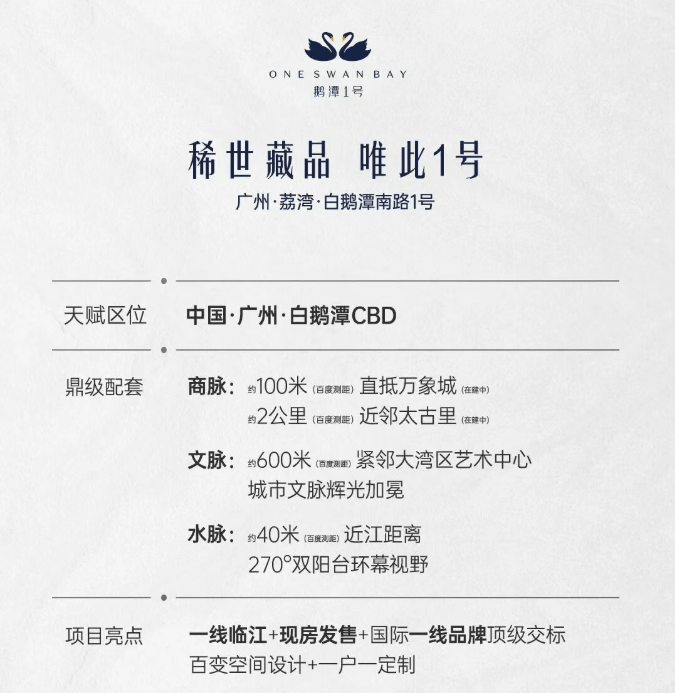 项目简介:在广州白鹅潭CBD核心区,与壮阔白鹅潭江景的交汇处,拥有地脉的厚重、水脉的气运、文脉的深邃与生活的奢雅。它是地脉、江景、文脉与生活的共生,能穿越时光、承载家族精神的“1号”符号。