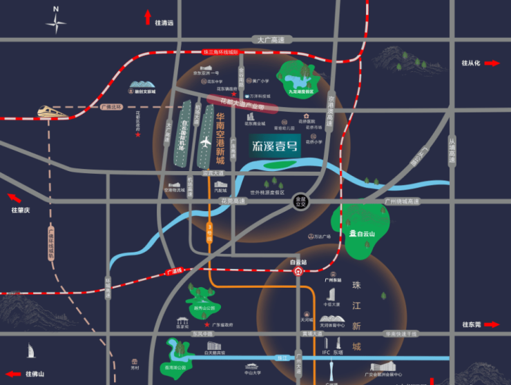项目周边自然环境优美,拥有3000米一线河岸风景,从南门出去就是60公里直通从化的绿道,河对岸是世外桃源旅游景区,有水上乐园、七彩花田等休闲娱乐场所。周边3公里内还有竹洲、河滨公园等16处休闲场所,为业主提供了丰富的休闲娱乐选择。从发展潜力来看,项目靠近白云机场全新T3航站楼,随着航空产业的不断发展,区域的经济和人气将不断提升。同时,周边交通、教育、商业等配套不断完善,未来项目所在区域的价值将进一步凸显,无论是自住还是投资都具有较大的潜力。