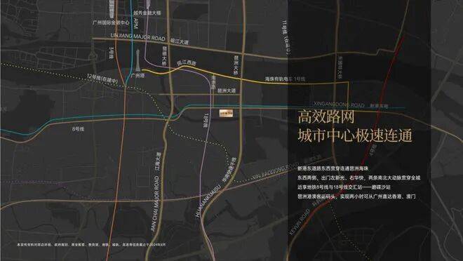 【8横5纵5隧道】:南接新光快速、右邻华南快速,纵猎德大桥、广州大道,横通新港路、琶洲大道等