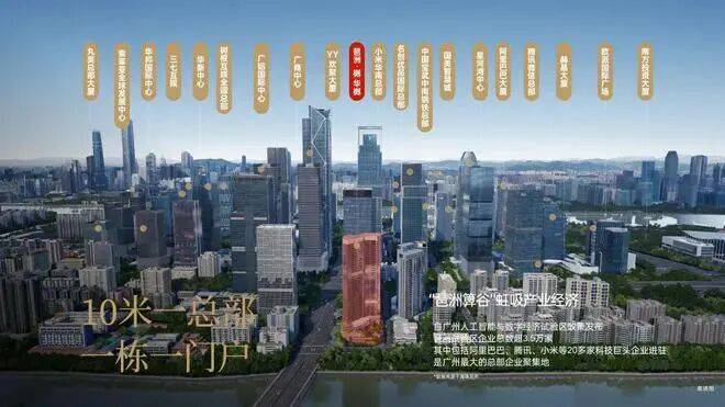 巨头为邻:琶洲西区打造华南地区总部企业聚集地,已引进阿里巴巴、腾讯、小米等总部企业超25家,计划到2035年超50家,以“10米一总部,一栋一门户”的规划,建成华南最大总部聚集地。