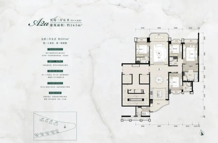 视野: 户户南北对流,270°环幕江景,一线临江。