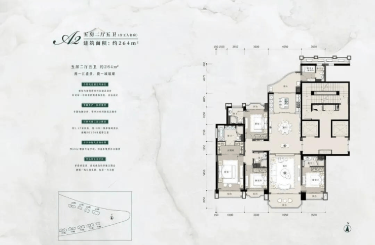 天赋资源:三江交汇岛尖,三面环江,拥万亩湿地公园与高尔夫景观,私密性无与伦比。