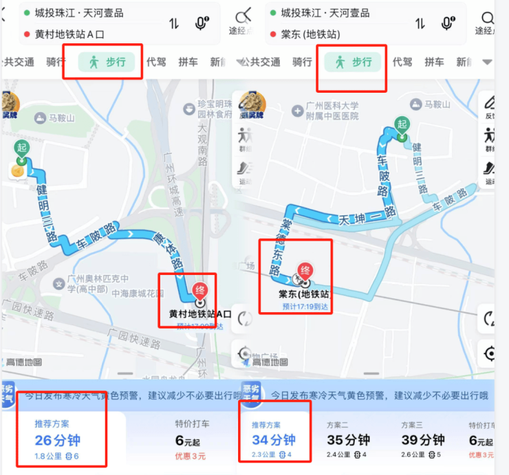 地铁交通:距离最近的有21号线棠东站和4号线黄村站(重要枢纽)都差不多在2公里左右的距离。