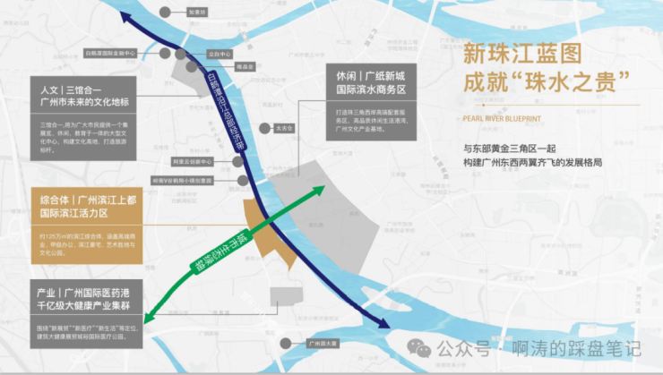 8大业态城市综合体,规划有大型商业,企业总部,星级酒店,滨江公园,文化艺术中心,教育医疗配套,高端居住及TOD立体交通于一体,广州唯一最全配套大体量的综合体。