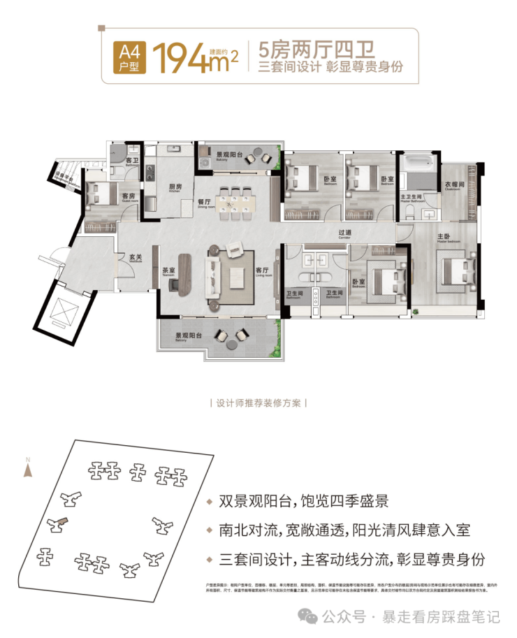 【194㎡:5房2厅4卫】(3套间)