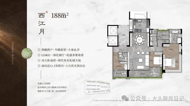 【板式楼栋】2.93低密府院大宅,一字板式楼栋布局,户户朝南,风光俱佳。一轴入府,以礼制中轴对称规制院落布局,尽显府院的东方美学