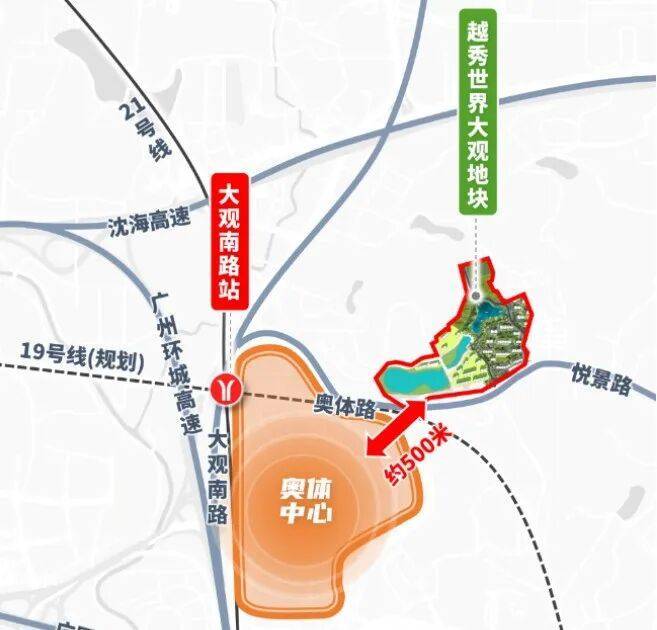 地块位于天河区世界大观,悦景路以北,帝景山庄以西。现状交通距离最近的地铁大观南路站约2km,目前越秀观樾、合生缦云、合景帝景山庄等业主主要通过悦景路出行,东接珠吉路,西连奥体路,从珠吉路和奥体路可以连接广园快速、大观南路等主干道,上下高速也比较方便。
