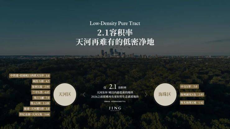 • 主城唯一容积率约2.1的绝版低密净地、天河核心区难再有的可连片开发无城中村的稀缺净地