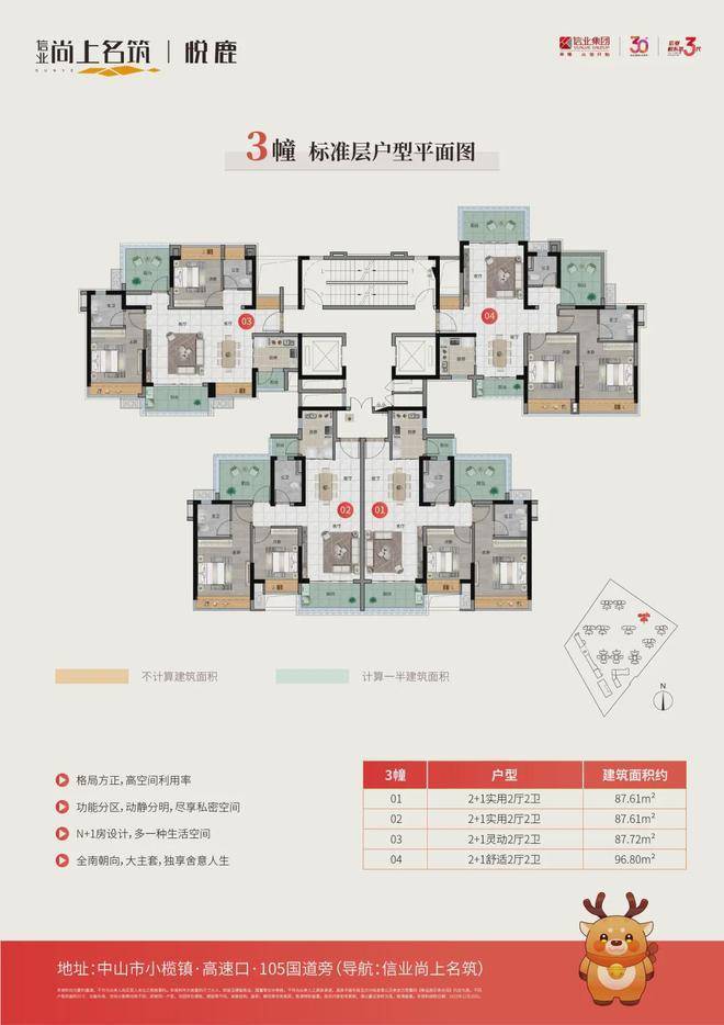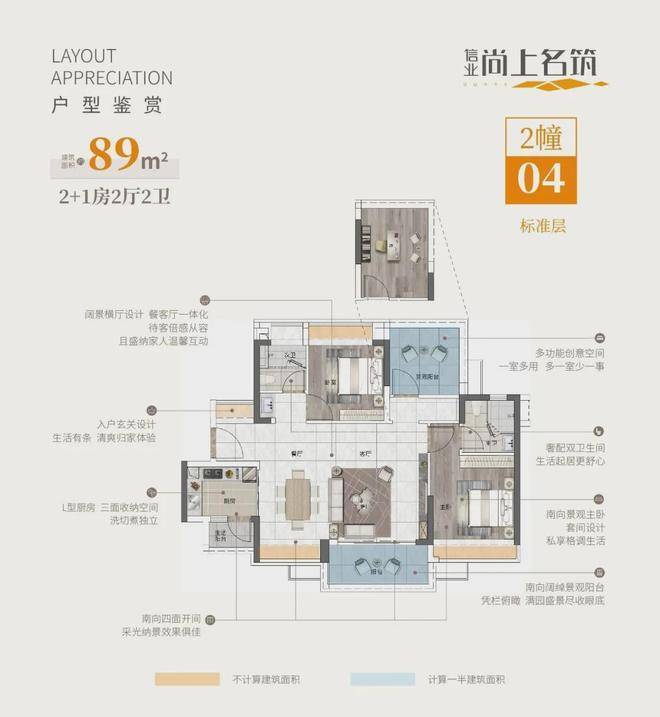 片区少有高实用率N+1灵动户型,建筑面积约82-97㎡三房。以南向景观主流设计,同时考虑各功能分区合理运用,实现户型高增送弹性实用空间与南向景观最大化。