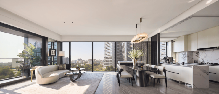 仪式感入口界定品质格调,实现从城市喧嚣到静谧家园的自然过渡;多重归家礼序步步为景,既承袭中国传统尊贵待客之道,更彰显豪宅于繁华处隐贵秘境的雍容气度与内敛风骨;专梯召唤的奢适设计,作为奢邸标配,让居者自入户起,即启幕豪门生活体验。
