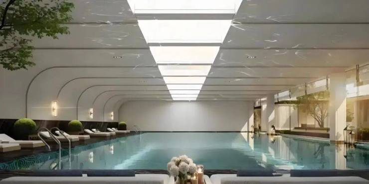 游泳池采用恒温设计,四季均可使用。儿童乐园则为孩子们提供了安全、有趣的活动空间。