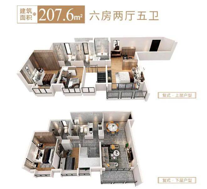 建面约 164 - 208㎡复式四至六房