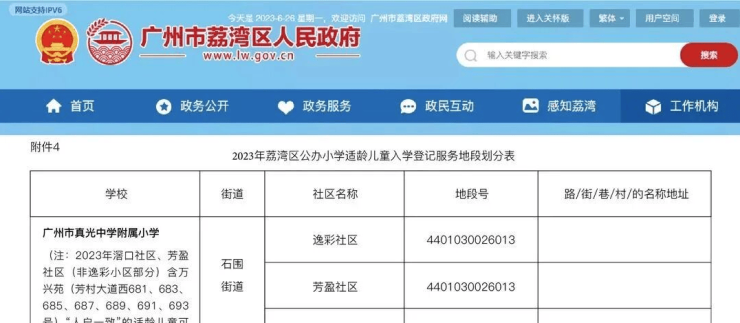属于广州市真光中英文小学的学区划分之内,广州四中95%的概率