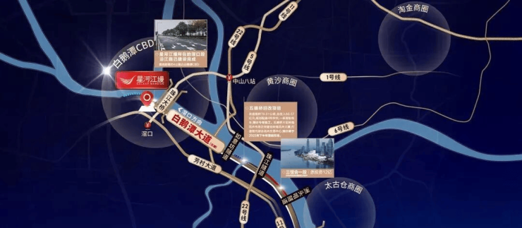 未来通过白鹅潭大道约4公里直达白鹅潭CBD腹地