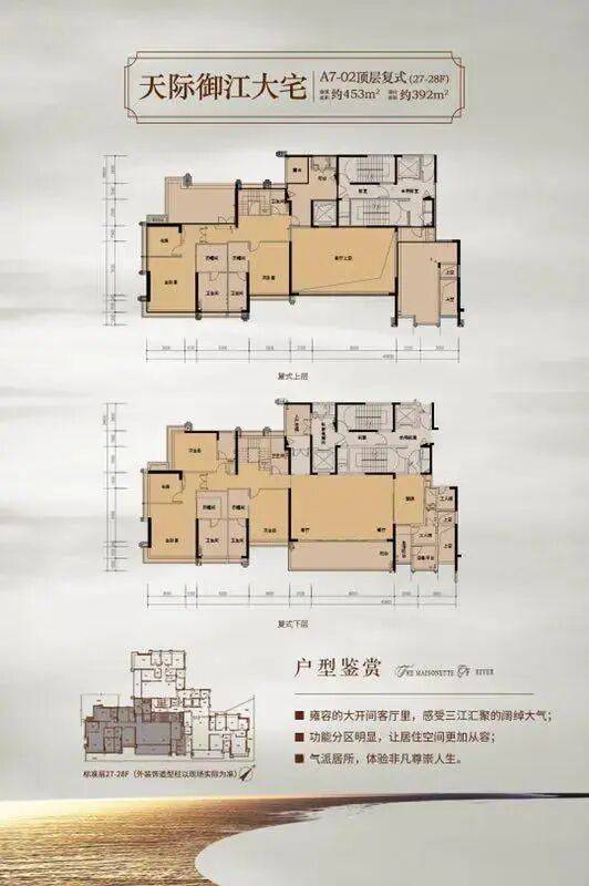 天墅产品:约28层-35层高,户型面积约360-950㎡的奢华四到五房户型;每户均特设私家入户花园,超大开间,超大阳台,无敌景观;
