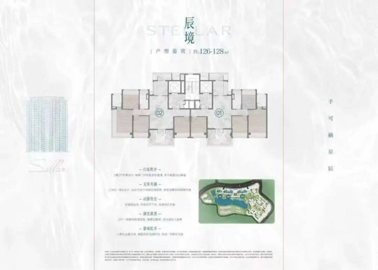 占地面积:约5.76万㎡、住宅建面约7.76万㎡、映辰湖约1.75万㎡环湖带;