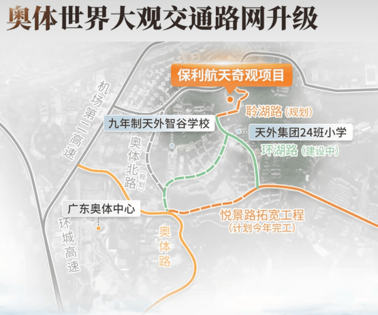 周边还环绕大观湿地公园、火炉山森林公园等四大生态公园,还有广东奥体中心(距离2公里),日常遛娃、吃喝玩乐也不愁。