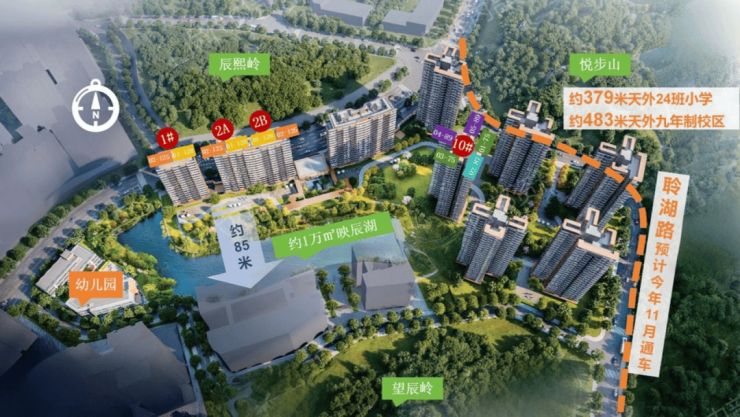 项目是天河东目前少有的低密度、低门槛湖景盘了,南侧有1.1万方映辰湖+600方绿地,距离不远处还有世界大观的月亮湖太阳湖。