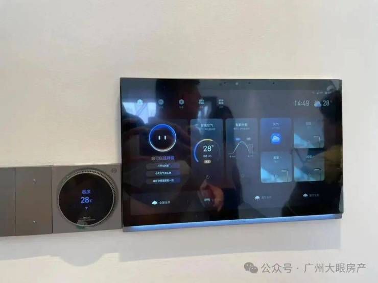 所有户型都带精装交付,赠送全屋空调、厨房四件套(抽油烟机、燃气灶、洗碗机和净水器),室内也配了智能操控面板。