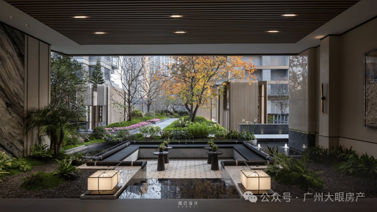 在园林上,摒弃市面上多用的围合式设计,其以垂直立体的景观的方式呈现。只要你变换位置,视角和景观面就会呈现不同的“丰盛”,整个园林常看常绝新,趣味性牵动了情绪的愉悦。