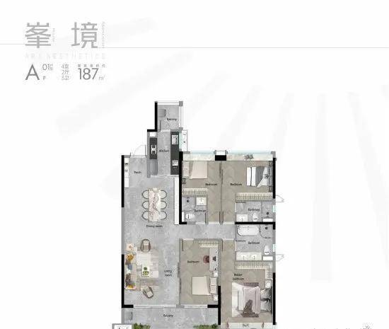 五期的产品相比之前来说尺度更大,产品线更高端,涵盖99/109/116/128/136/140/187/218㎡三至四房