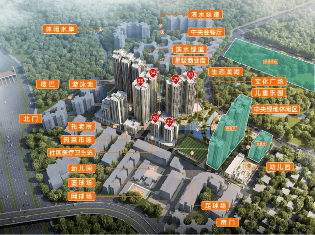 社区内涵括3大幼儿园、明德小学,并与执信中学为邻,拥有齐全的学校资源,也有泳池、龙湖、足球场、儿童乐园、文化广场、肉菜市场、托老所、架空层休闲区等齐全的生活休闲配套。