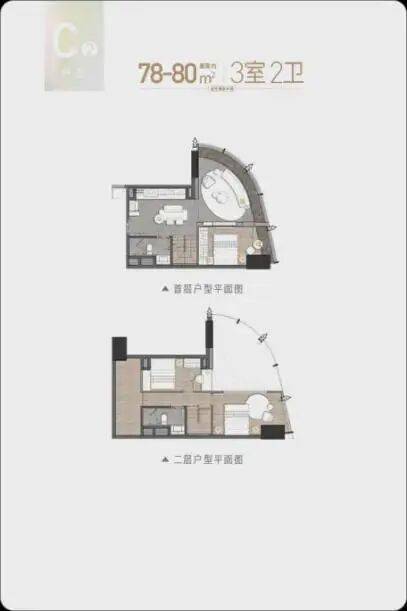 建面约64-80㎡创享3房