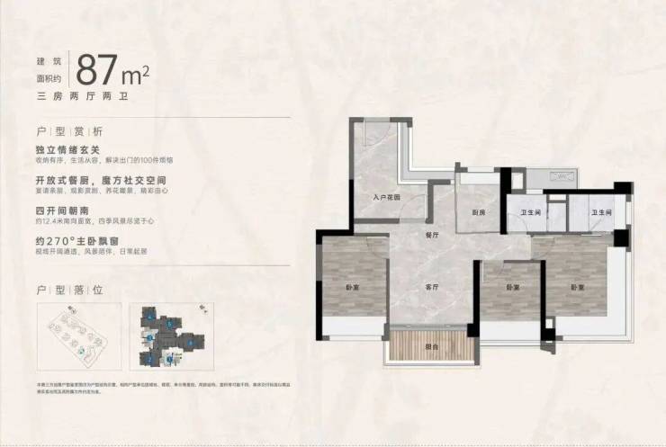 2️⃣ 【建面约87㎡南向三房】南向四面宽!