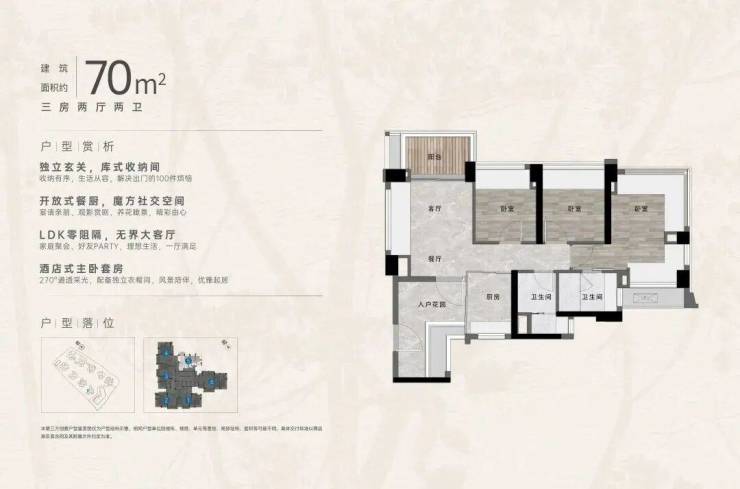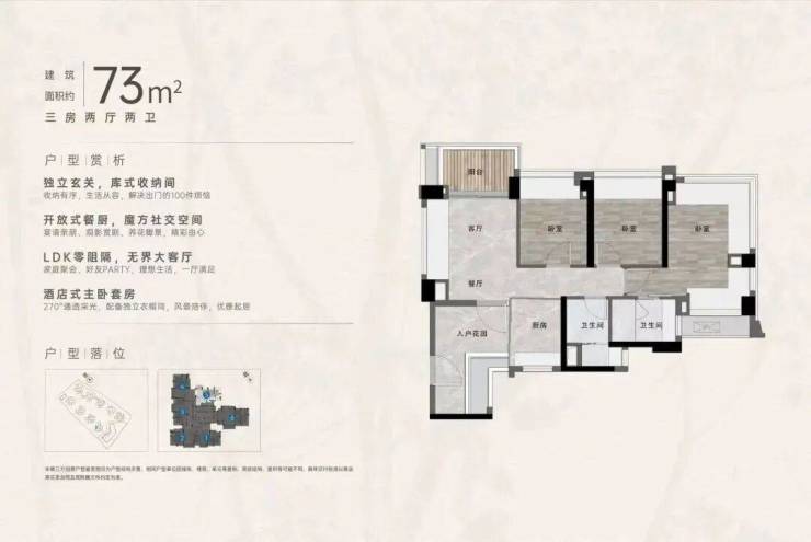 1️⃣ 【建面约70㎡/73㎡三房两卫】原地封神小户型!