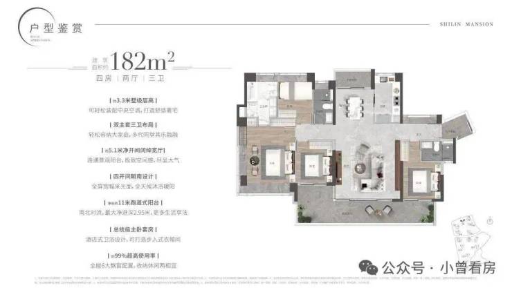 【182㎡四房二厅三卫】