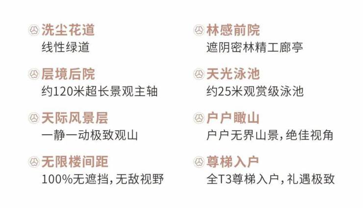 用温度与情感的生态语言营造自然景观,呈现功能、温情、风景交融的园林美学;融入安缦隐奢哲学、Alila奢级酒店的生活美学理念。在建筑与户型上,升级奢级体验,户户瞰山、无限楼间距、T3尊梯入户。打造120米景观主轴,步步皆景。生活的艺术并不是流于表面,而是藏于设计与空间背后的美学逻辑与生活态度。