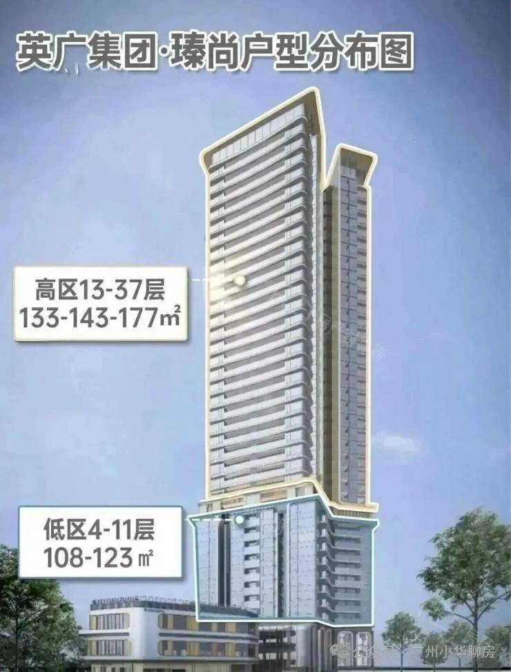高区13-37层,约144户,主推建面约133-143-177㎡四房,专为高端改善人群量身定制。