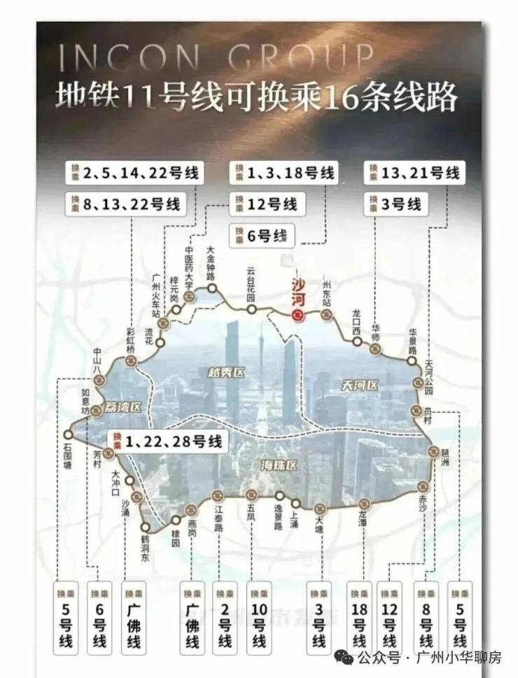 广州设计的首条大环线——地铁11号线,也经过这里。而广州11号线描绘的,是广州的“核心通勤圈”、“核心商业圈”、“核心资产圈”。
