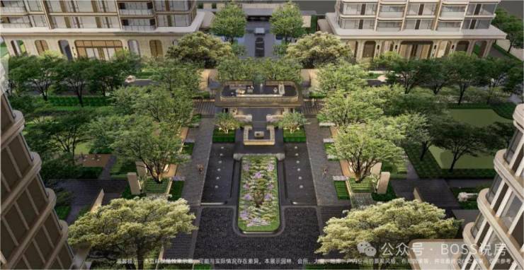 节点:主入口水景、下沉庭院、镜面水景、艺术雕塑、绿植组团,形成归家仪式与疗愈空间。