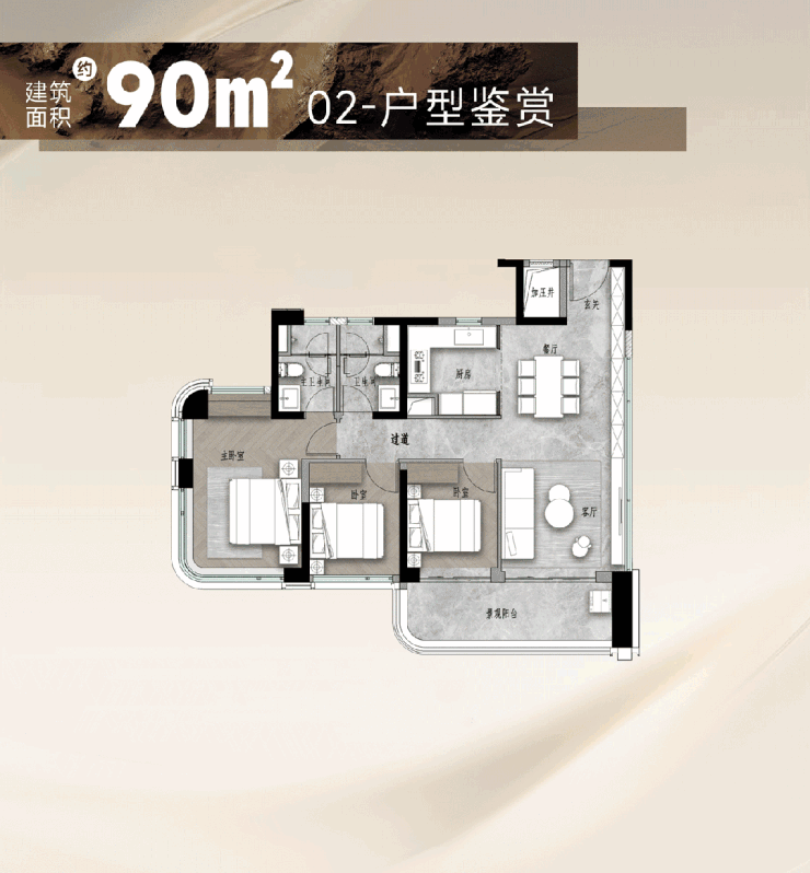 一是”全景舱“体验——全部户型无论大小,主套配备270°弧形玻璃,外望珠城珠水,内望中轴园林。