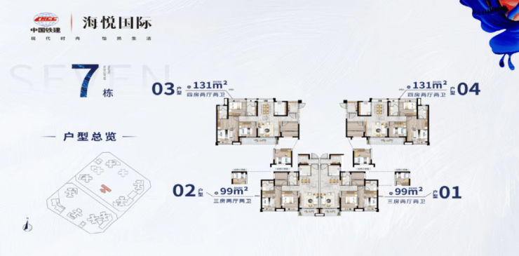 【平层】7栋楼王单位,99㎡/131㎡三四房,超宽楼间距,赏最佳园林景观