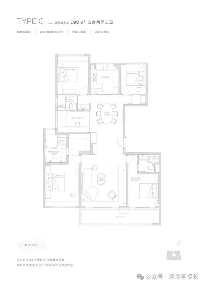 【190㎡双阳台户型】观景双阳台-高定双套间-私家电梯厅-双洄游动线