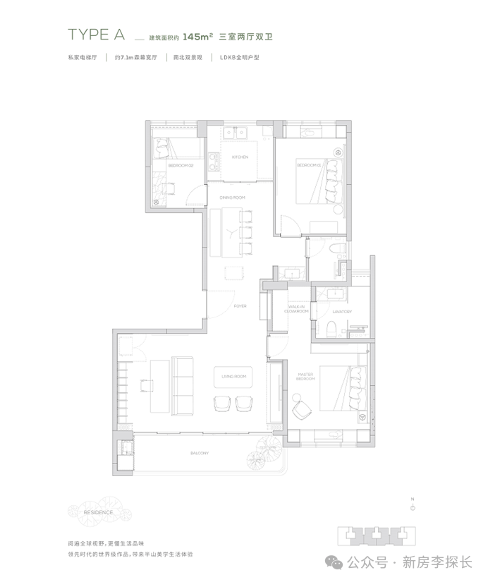 【145㎡户型】独享私家电梯厅-约7.1m²森幕宽厅-LDKB全明户型