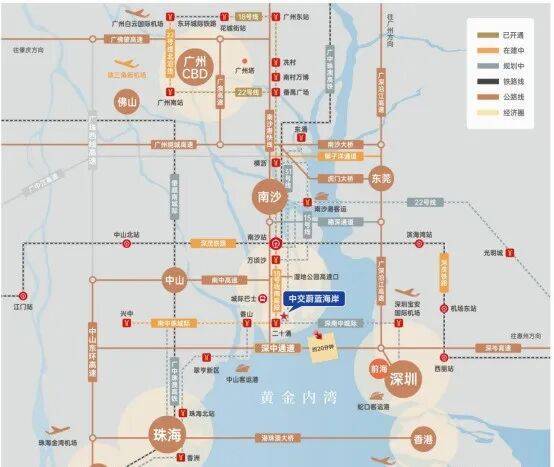 中交蔚蓝海岸项目紧邻深中通道南沙支线,通过一座桥梁即可直达深圳宝安及前海,融入深圳生活工作圈。