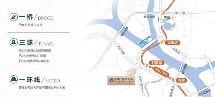 🚌约1KM到珠江大桥、2KM到珠江隧道、3KM到洲头咀隧道,畅达主城四区。