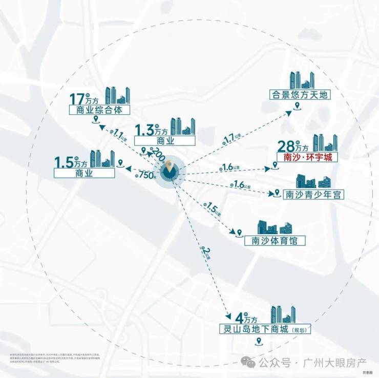 项目位于南沙区府与灵山岛CBD黄金交汇处,所在片区定位为大湾区顶级魅力艺创门户,未来居住人口可达11.14万人