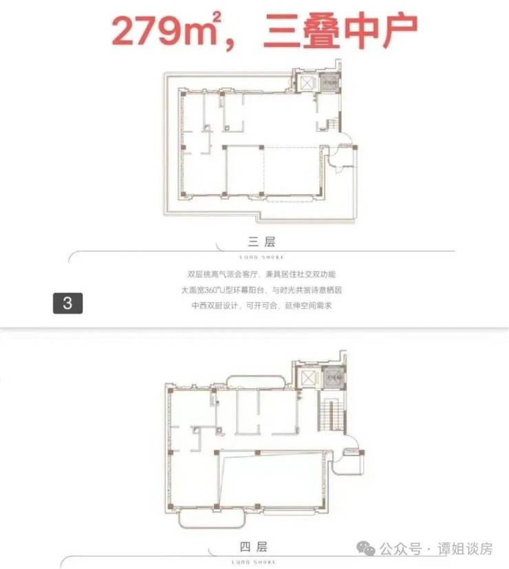 下叠面积为305㎡,首首层花园面积区间约为233-517㎡,实用率238-355%;三叠户型最高可做到6房。