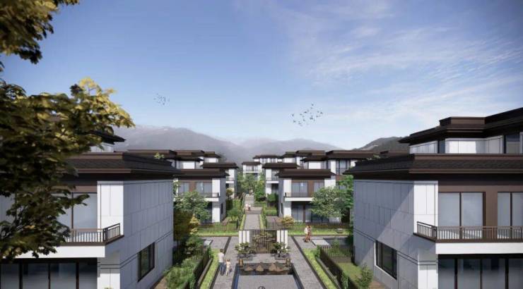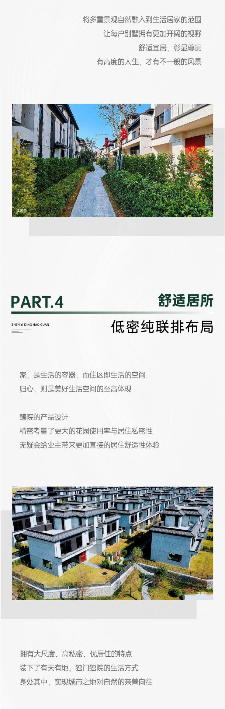 【臻院】顺应地势,从30米高处筑建台地,依托每排别墅拥有的1-2米高差,打造台地式立体园林,以现代设计表现手法,营造出简约、雅致的观游体验。